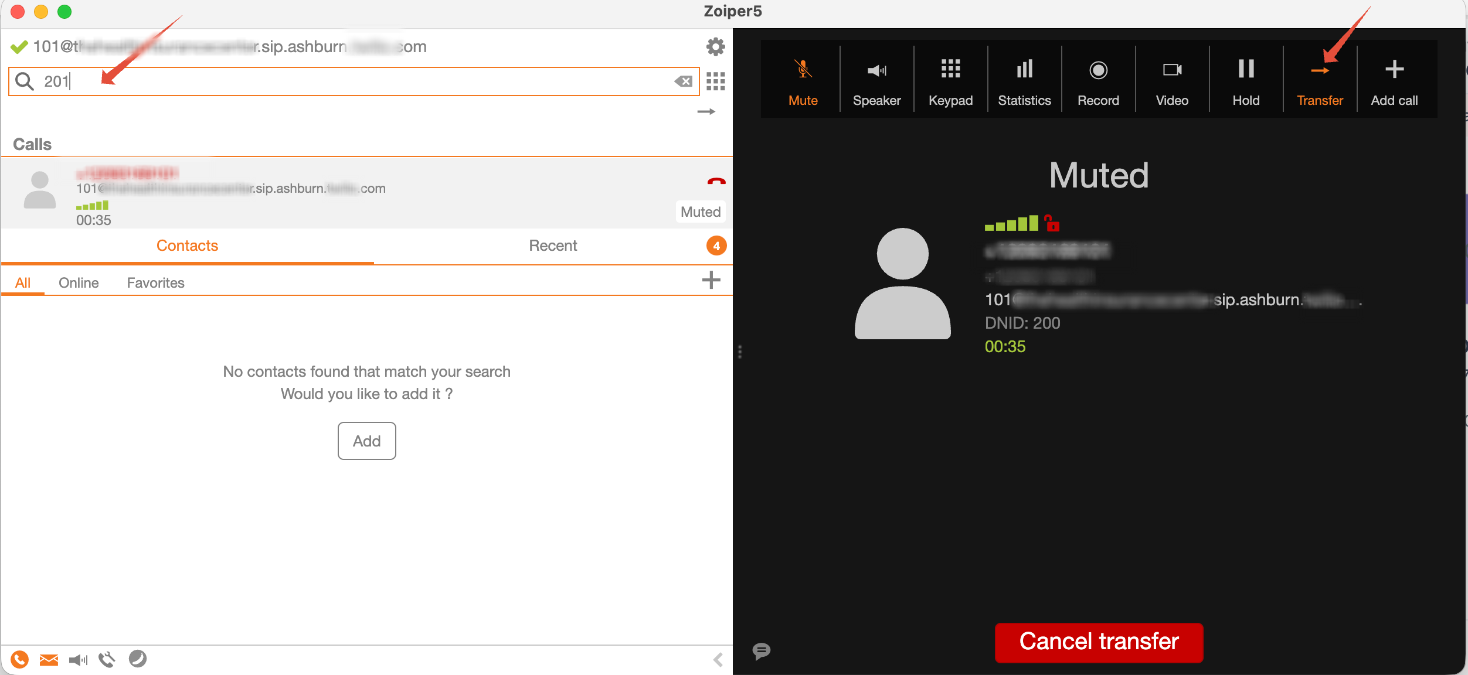 Note: Only blind transfers are supported. Warm transfers are not currently available