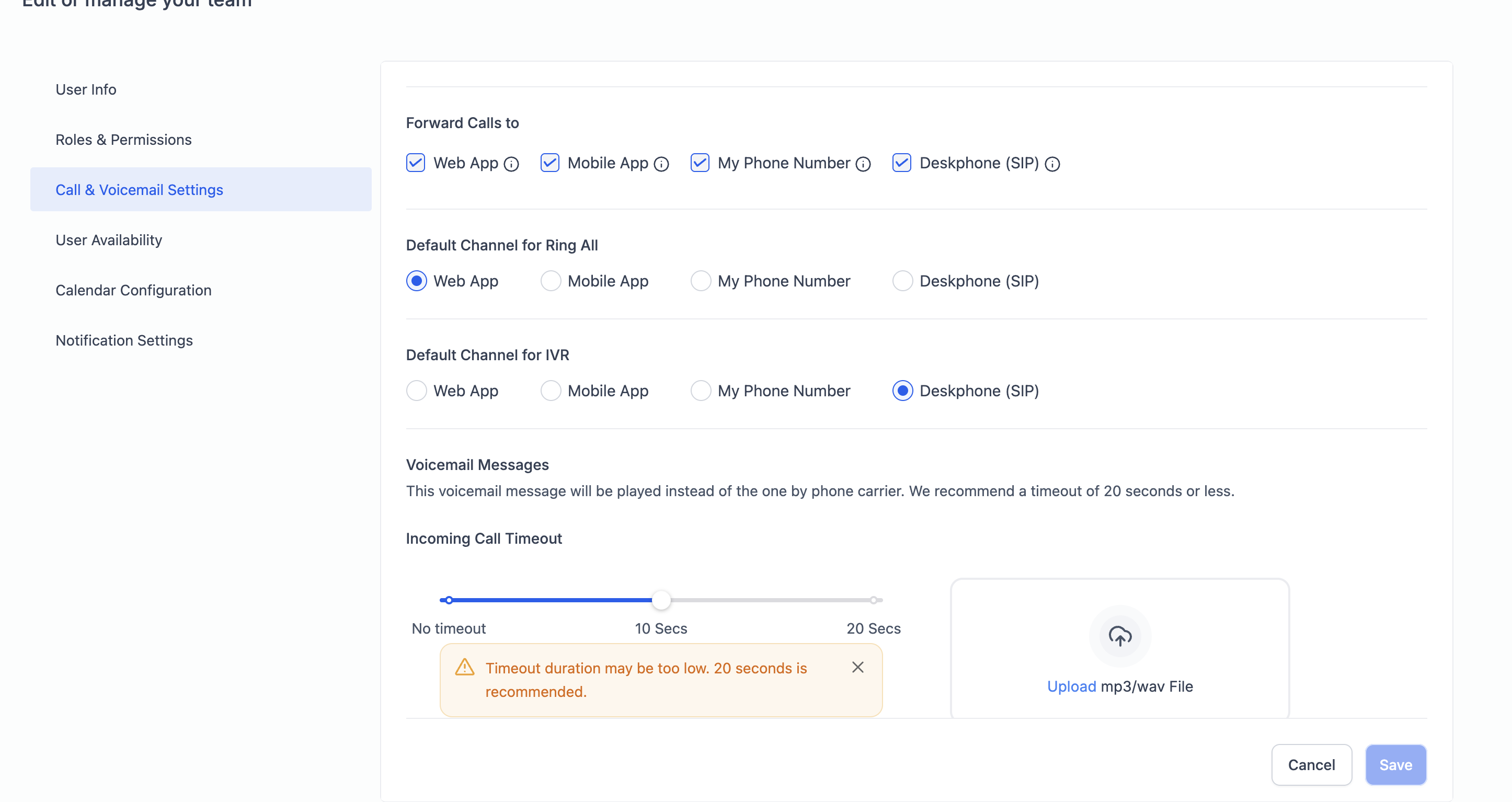 The IVR channel must be set to “Desk Phone” under the user’s Staff Settings.
