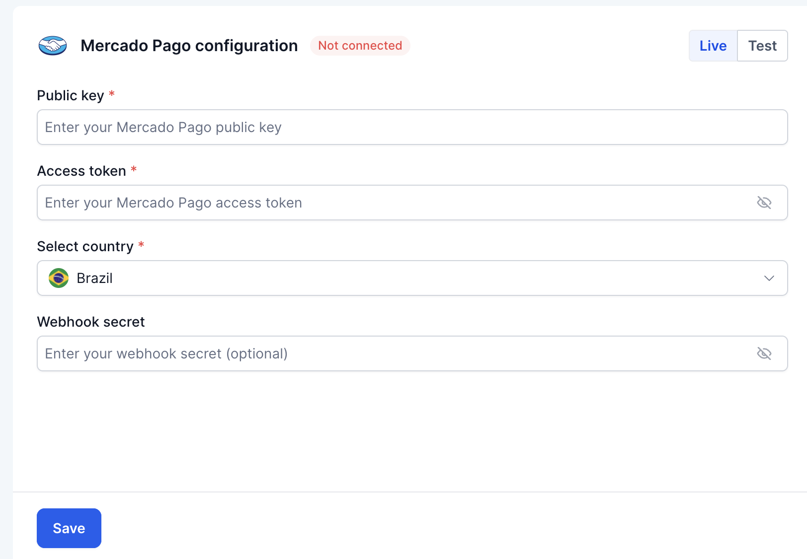 Step 3: Enter your Mercado Pago credentials