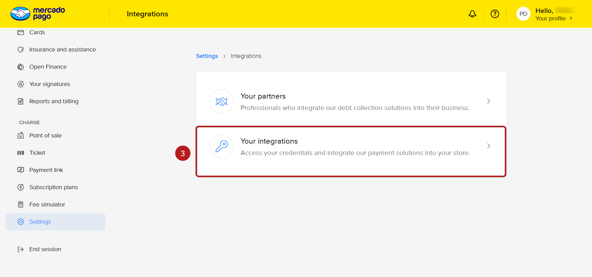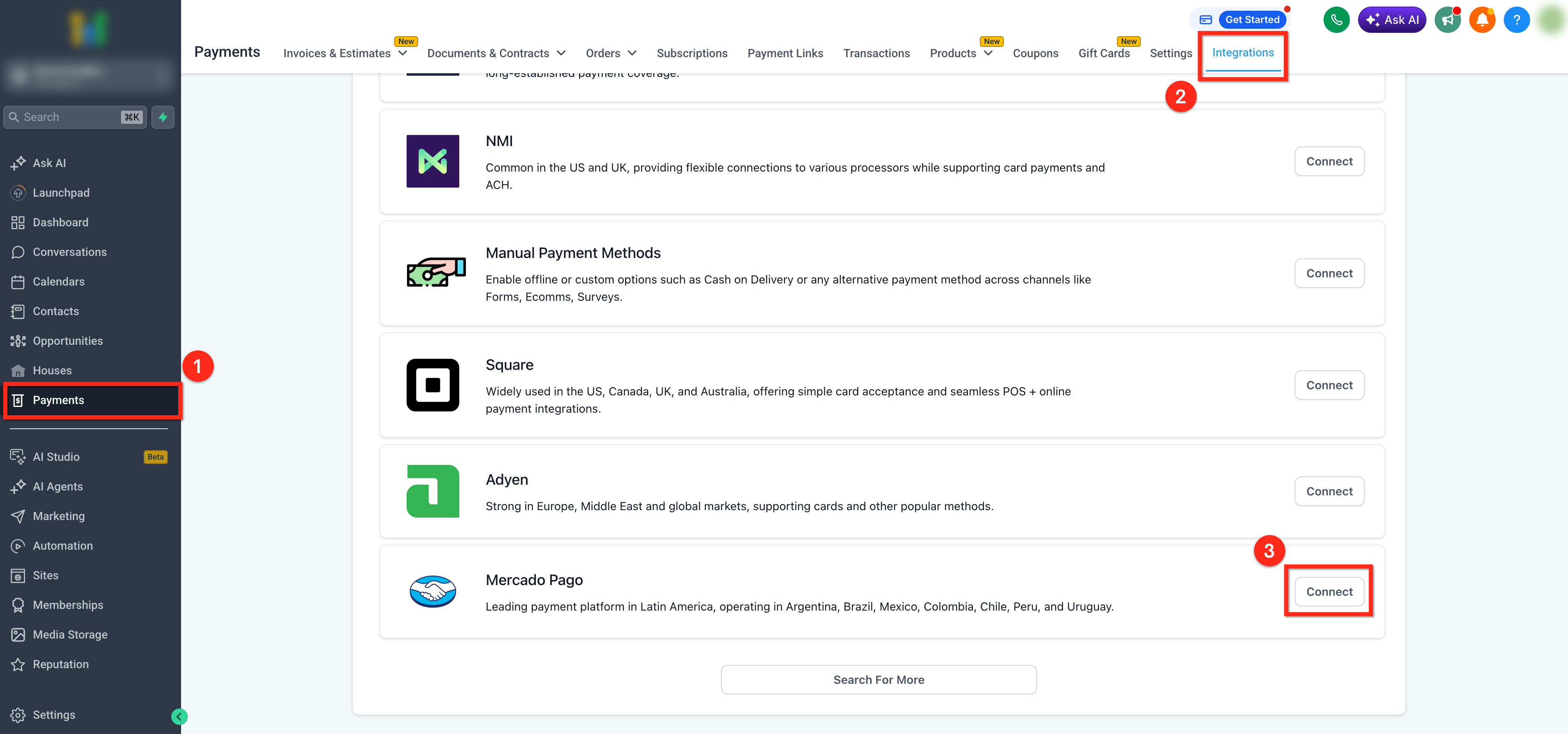 Step 1: Open Mercado Pago in Payment Integrations