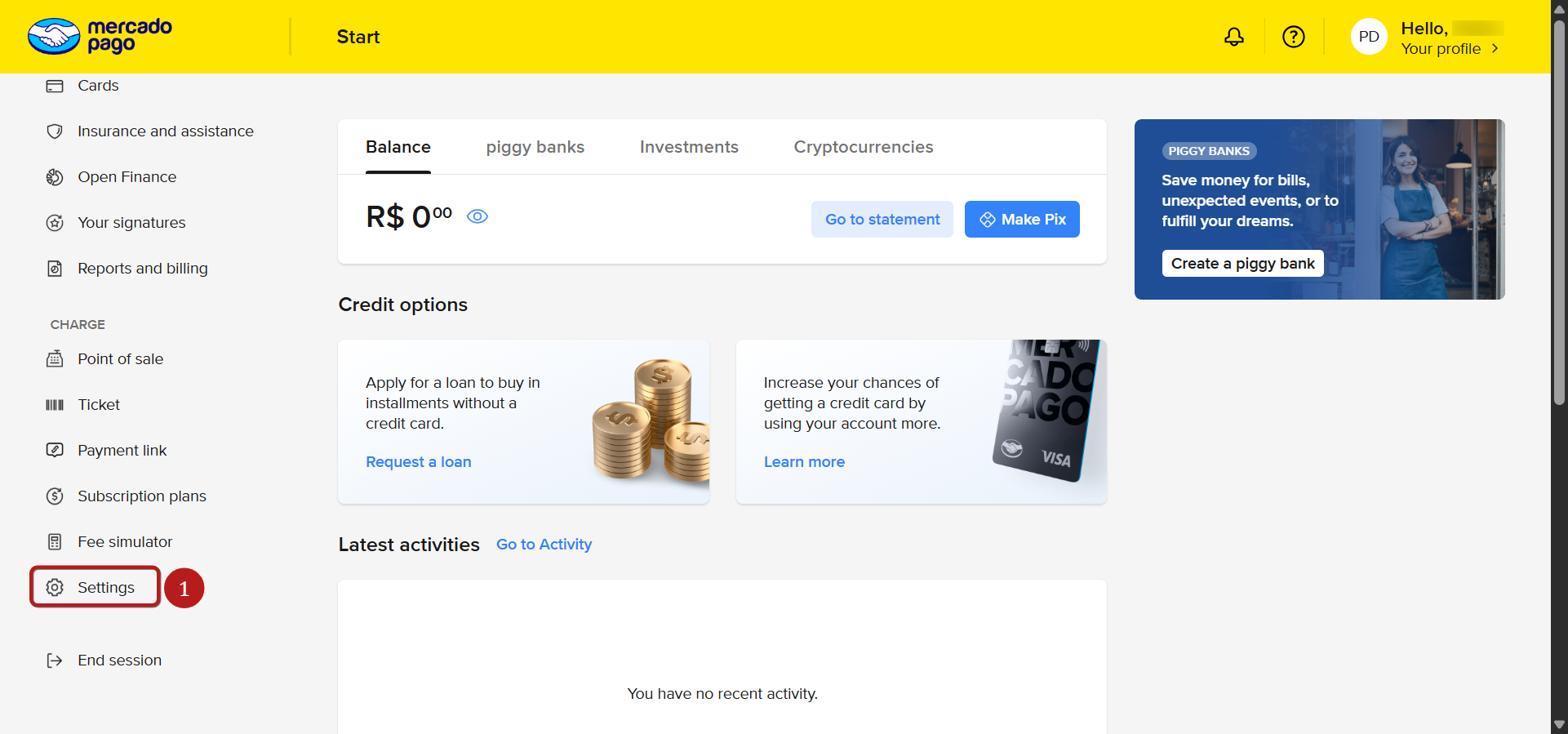 Sign in to your Mercado Pago account.