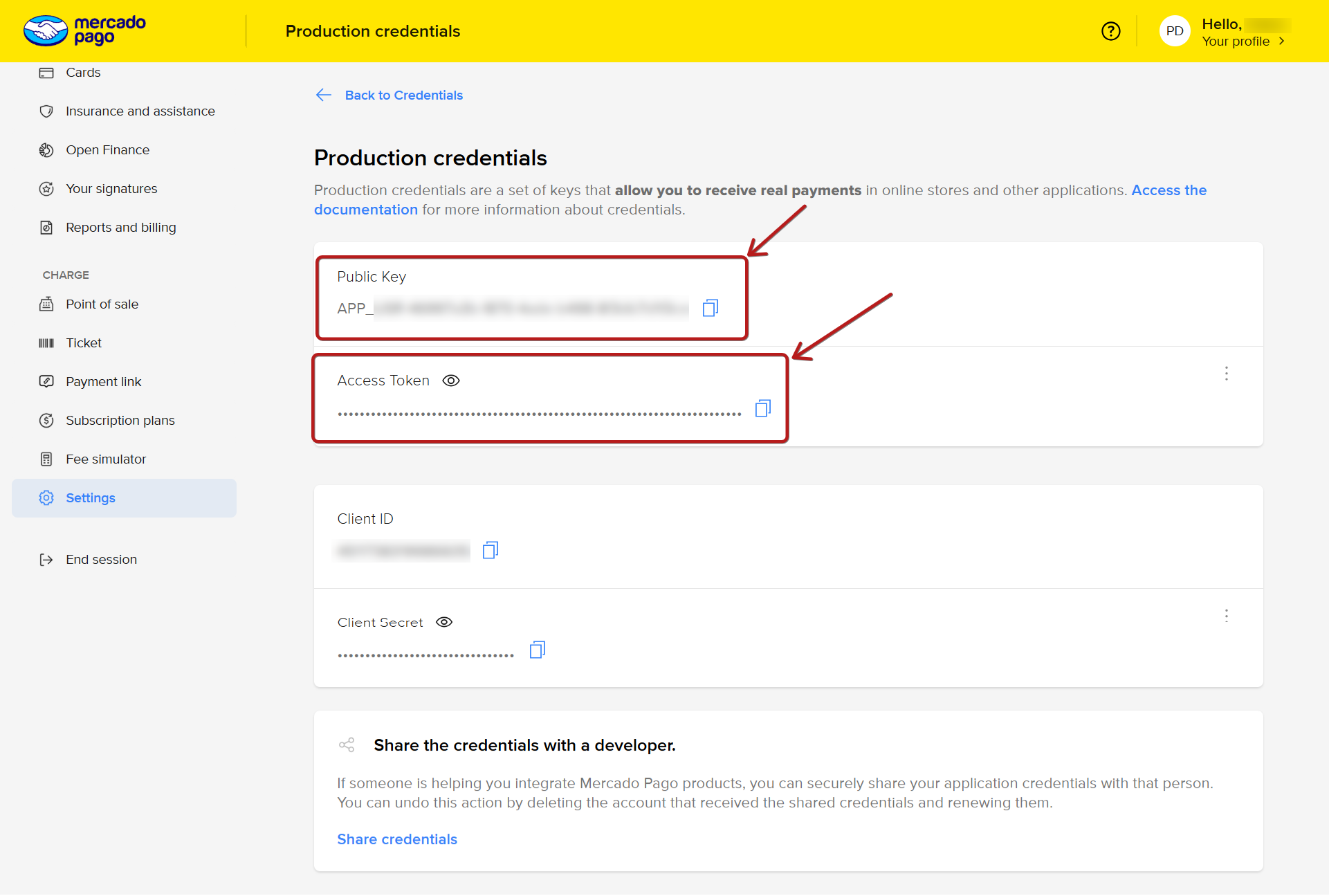 Step 2: Get your Mercado Pago production credentials