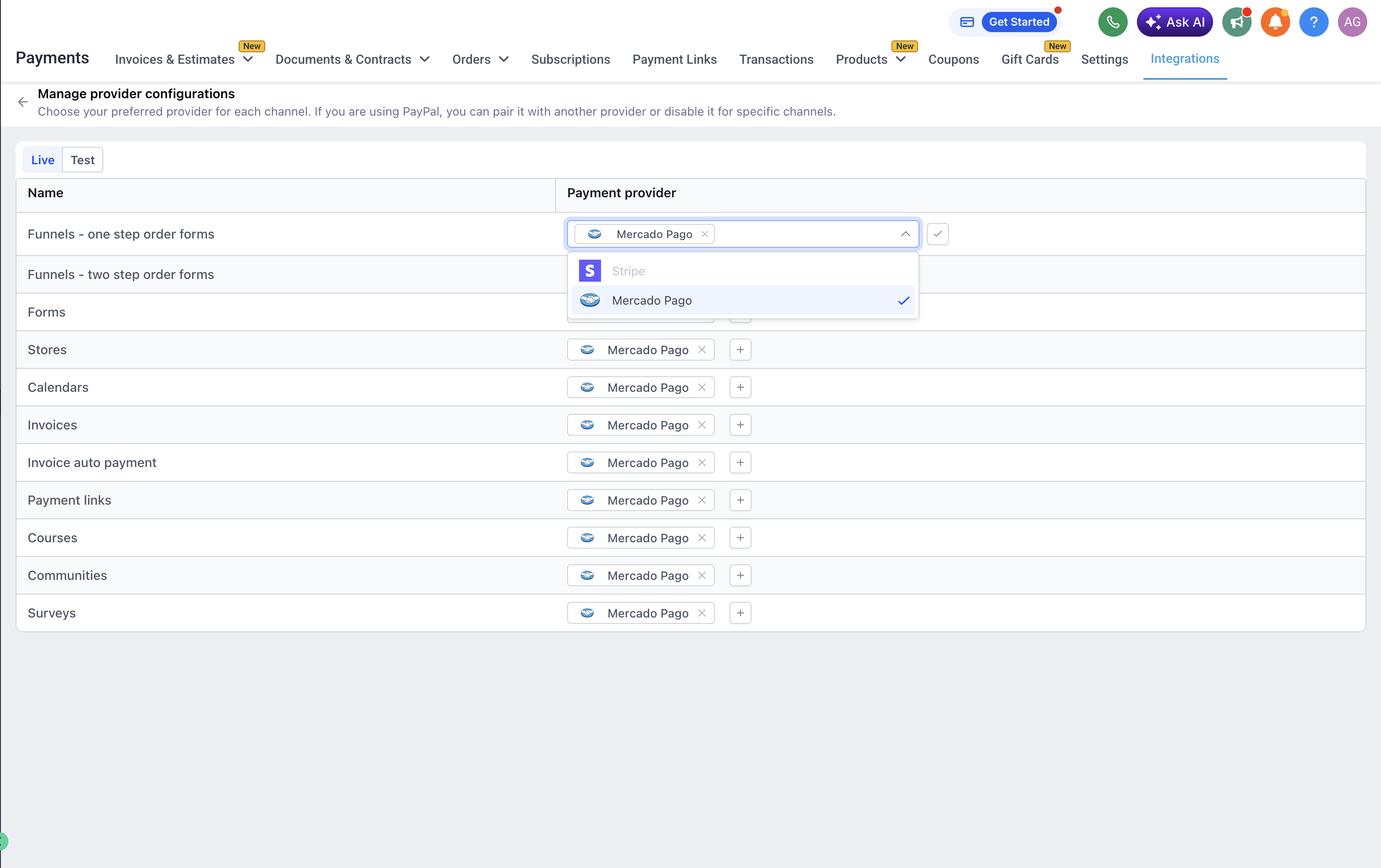 Step 5: Assign Mercado Pago by channel